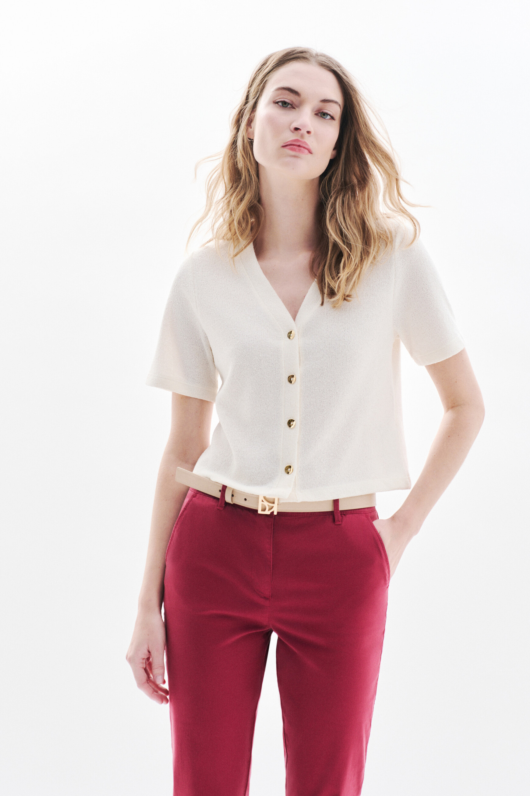 - Déjate seducir por la camiseta tvacances, una pieza de corte recto que combinará con todos tus conjuntos. Esta camiseta lisa de poliéster y algodón es cómoda de llevar a diario, gracias a su tejido transpirable de tacto suave.