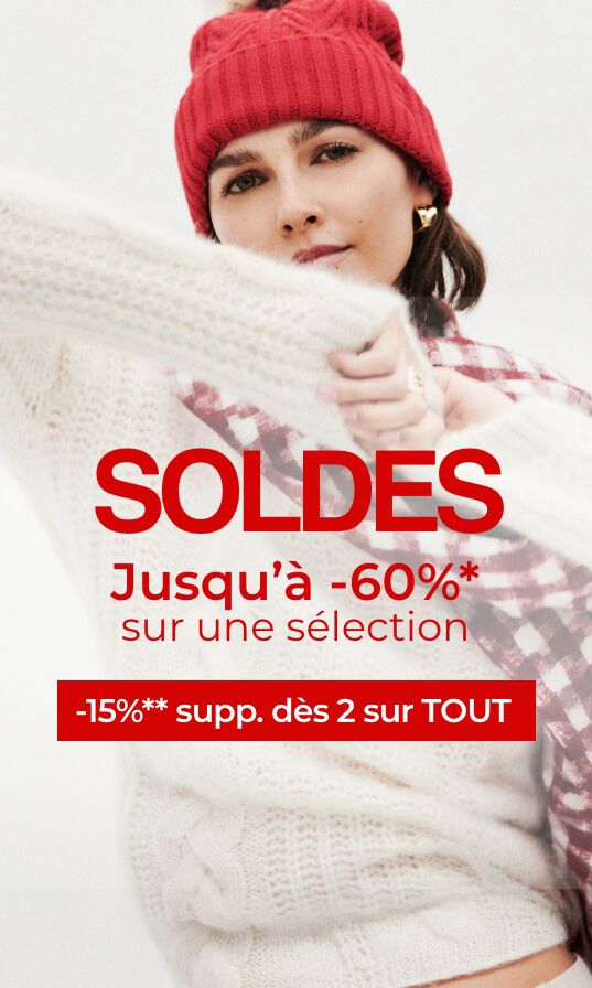 SOLDES : jusqu'à -60%* & -15%** supp. dès 2 sur tout