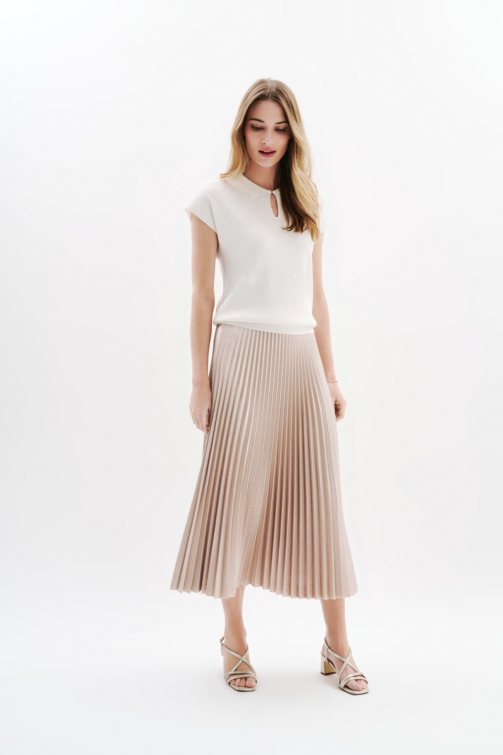 Idées look - Le pull Mruben se marie bien avec une jupe midi plissée et des escarpins pour un look élégant.