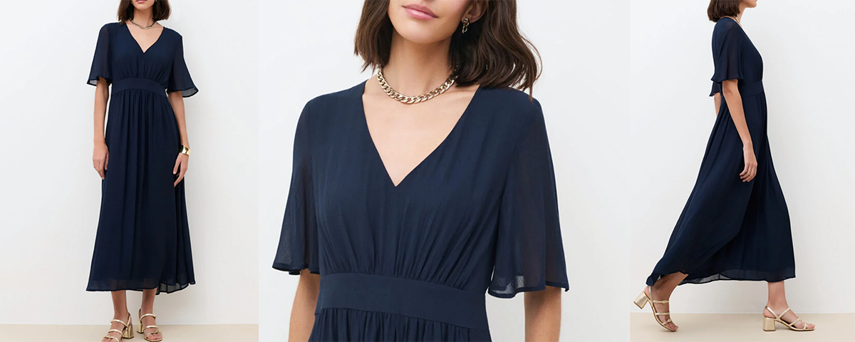 Os vestidos midi constituem um comprimento estratégico para mulheres que desejam usar vestidos apesar de uma barriga pronunciada, pois esta proporção particular redistribui visualmente os volumes e cria um efeito de alongamento que transcende a morfologia abdominal. O ponto de queda ideal de um vestido midi situa‑se entre o joelho e o tornozelo, geralmente ao nível da canela, criando assim uma linha que alonga naturalmente as pernas ao mesmo tempo que conserva uma elegância sofisticada. Este comprimento particular desvia eficazmente a atenção da zona mediana para o movimento global da silhueta e a beleza da barra. O efeito psicológico deste comprimento não deve ser negligenciado: confere uma postura natural que transforma a maneira de se mover e reforça a confiança em si. A variedade de cortes disponíveis em comprimento midi permite adaptar esta proporção lisonjeira a diferentes morfologias: uma versão evasê disfarça harmoniosamente a barriga, enquanto uma versão mais ajustada aposta na verticalidade para afinar a silhueta.